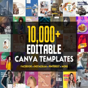 The ULTIMATE 10,000+ CANVA TEMPLATE BUNDLE includes 10,000+ professional designs across various categories, all easily customizable in Canva with intuitive editing tools for text, fonts, colors, and images.